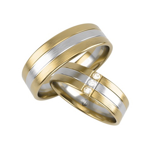 Opis: Elegancka obrączka ślubna wykonana z dwóch kolorów złota: żółtego na brzegach i białego po środku. Powierzchnia obrączki z delikatnym matem.
